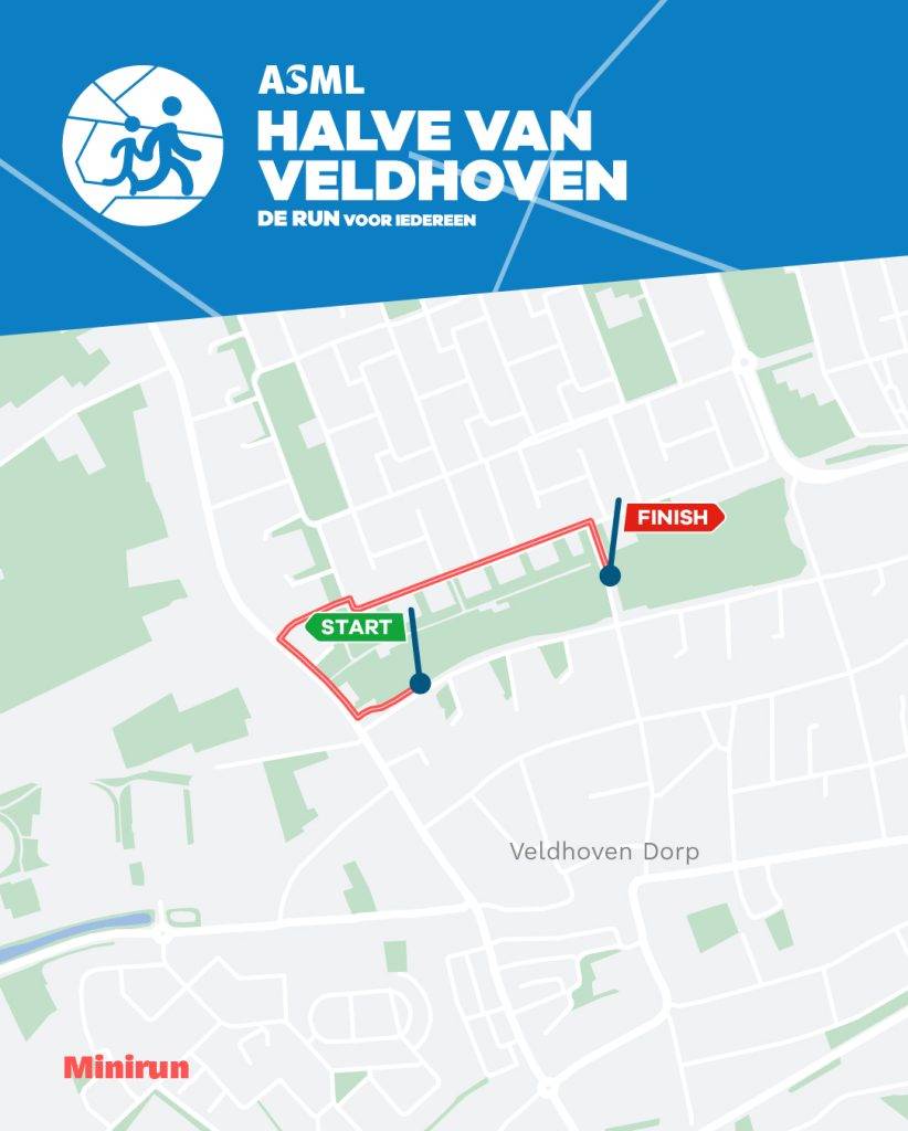 The ASML Mini Run has a short, fun route of 1.5 km. The children (aged 4 and up) and their parents start at the same location as the other distances, which means there are plenty of spectators at the start and finish.